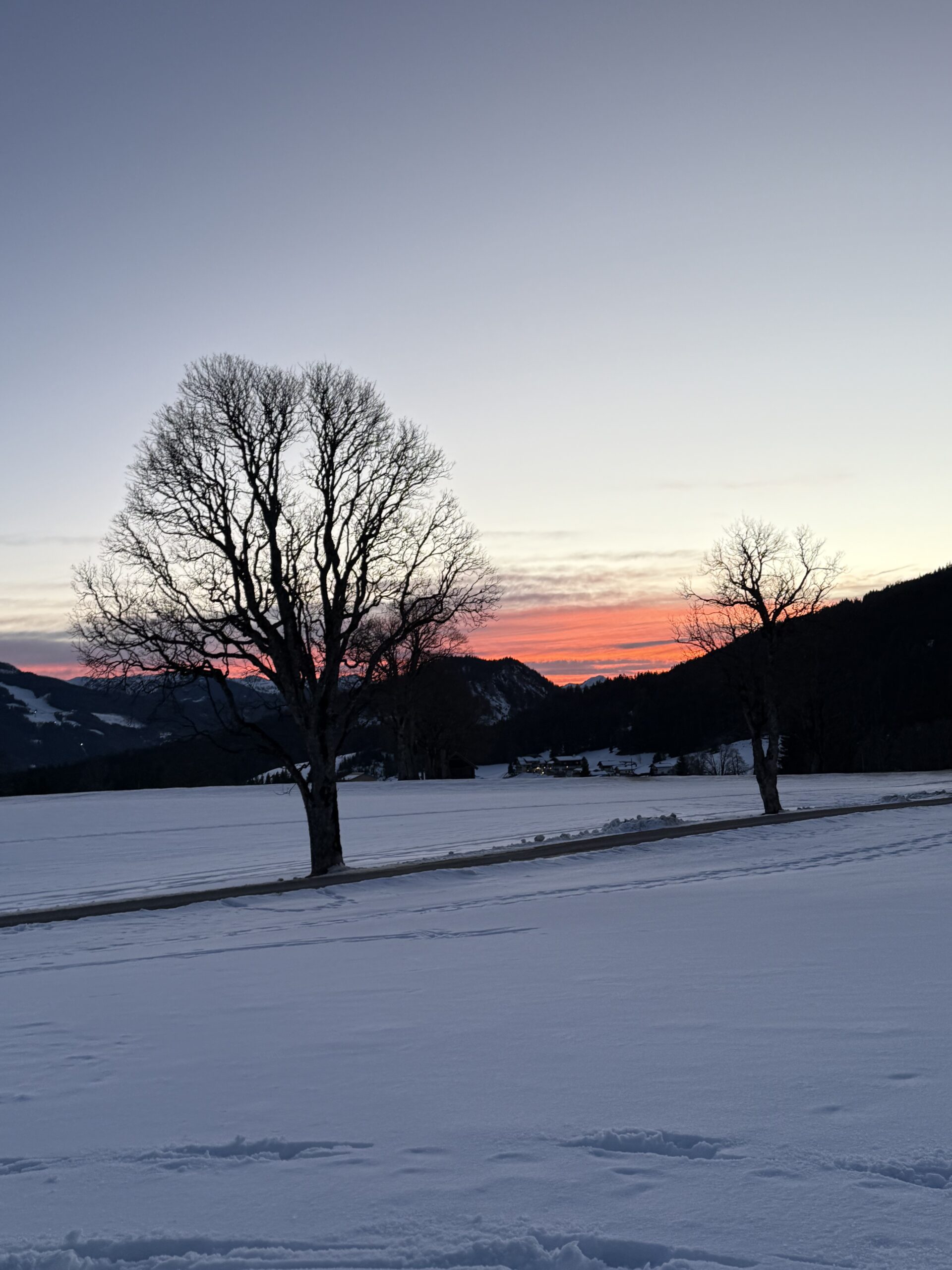 Eine traumhafte Erinnerung an den Winter: So richtig dick eingepackt in kuscheligen Wolldecken sitzen wir auf dem Pferdeschlitten von Bauer Christian Landl und genießen die traumhafte Stille in Ramsau am Dachstein in der Steiermark. Nur sanftes Klirren des Pferdegeschirrs… In der Ferne das majestätische Dachsteingebirge, langsam geht die Sonne unter vor massiven Alpengipfeln. Schnee bedeckte Felder. Knapp eine halbe Stunde entfernt von dem trubeligen Skizirkus in Planai. Christians kleiner Gehilfe, ein süßer Schosshund, sitzt frech kläffend neben seinem Herrchen in erster Reihe. Mein persönliches Highlight der Pressereise kürzlich nach Schladming-Dachstein.