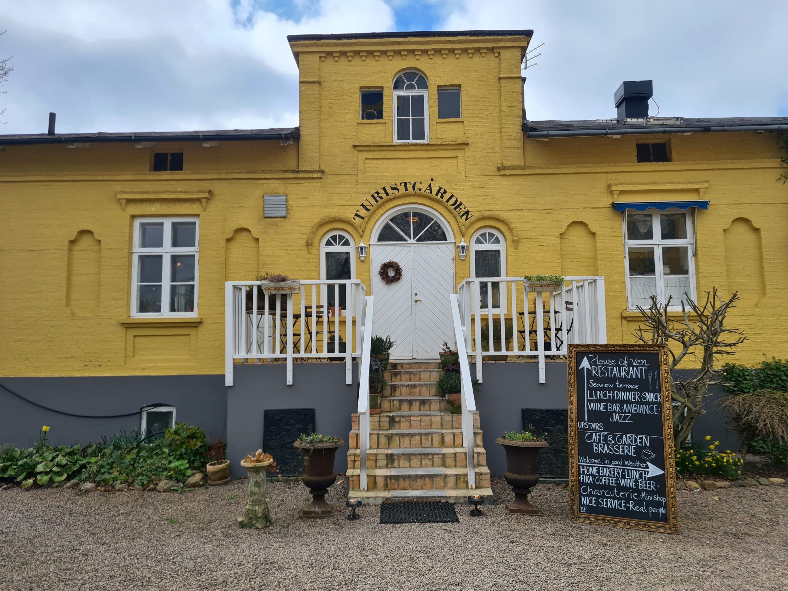 Auf der anderen Seite der Straße und unweit der backsteinernen Inselkirche serviert die deutsche Sterneköchin Kathrin Baake im Traditions-Restaurant House of Ven im alten Turistgården moderne Gerichte aus möglichst lokalen Zutaten. Nach einem abgeschlossenem Philosophie-Studium hat Kathrin zuvor im Malmöer Restaurant „Bloom in the Park“ einen Stern erkocht. 2021 zog sie auf die Insel und leitet seitdem die Küche im House of Ven. Das gemütliche Gasthaus ist bei Hochzeitsgesellschaften sehr beliebt. Aber keine Sorge, ihr bekommt hier aber auch ohne zu heiraten etwas Gutes zu essen.