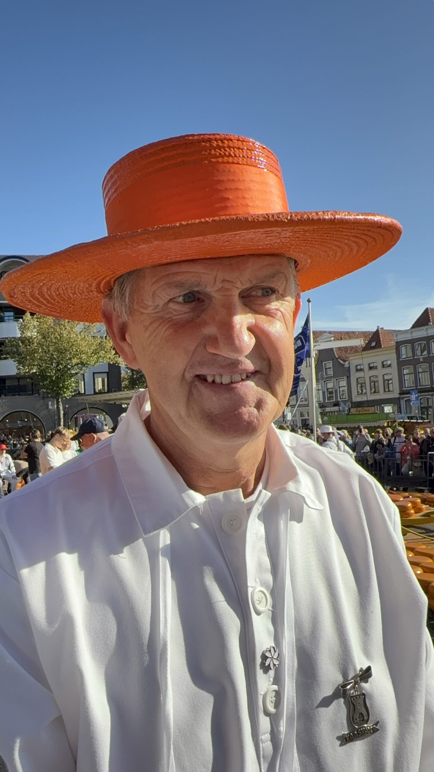 Die Alkmaarer Käseträgergilde wurde bereits im Juni 1593 gegründet. „Noch immer ist es eine große Ehre für junge wie ältere Männer beim Markt mitzumachen“, erklärt mir der 81jährige Kees Koopman. Es sei eine wahre Kunst, die Käseberrie beim Gehen ruhig zu halten. „Die Träger müssen in einem bestimmten Wiegeschritt gehen – dem ‚kaasdragersdribbel'“, weiß der rüstige Kees, der seit 40 Jahren in der Gilde ist. Auf diese Weise hängt die Berrie still zwischen den zwei Männern. Übrigens: Der Markt ist jeden Freitag, von Anfang März bis Ende September, von 10-13 Uhr, geöffnet. Während des Sommers (Juli und August) können Gäste ihn auch Dienstag abends, 19-21 Uhr, besuchen, kleine Gäste dann morgens um 10.30-11 Uhr.