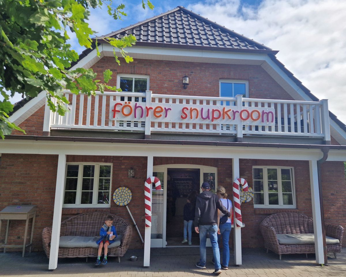 Am nächsten Morgen nieselt es. Ich breche auf zum Schwimmbad, stoppe aber gleich wieder in Oevenum: Dort ist donnerstags Wochenmarkt. Der hat mit dem klassischen Angebot allerdings wenig zu tun, sondern ist eher ein Handwerkermarkt. Hier bieten Schafbäuerinnen ihre Produkte ebenso an, wie Künstler*innen, Kinder wollen ausrangiertes Spielzeug loswerden, ein Anwohner verkauft alte Fahrräder. Es ist ein vergnügtes Durcheinander. Wenige Meter Richtung Wyk folgt der nächste Stopp am „Föhrer Snupkroom“. Enken Brodersen und Team produzieren hier diverse Süßigkeiten. Die Wahl fällt schwer. Bonbons, Lakritzpastillen, Lutscher, Salzkaramellen… Vielleicht von allem etwas? Einige Mitbringsel für Zuhause sind jetzt geklärt.